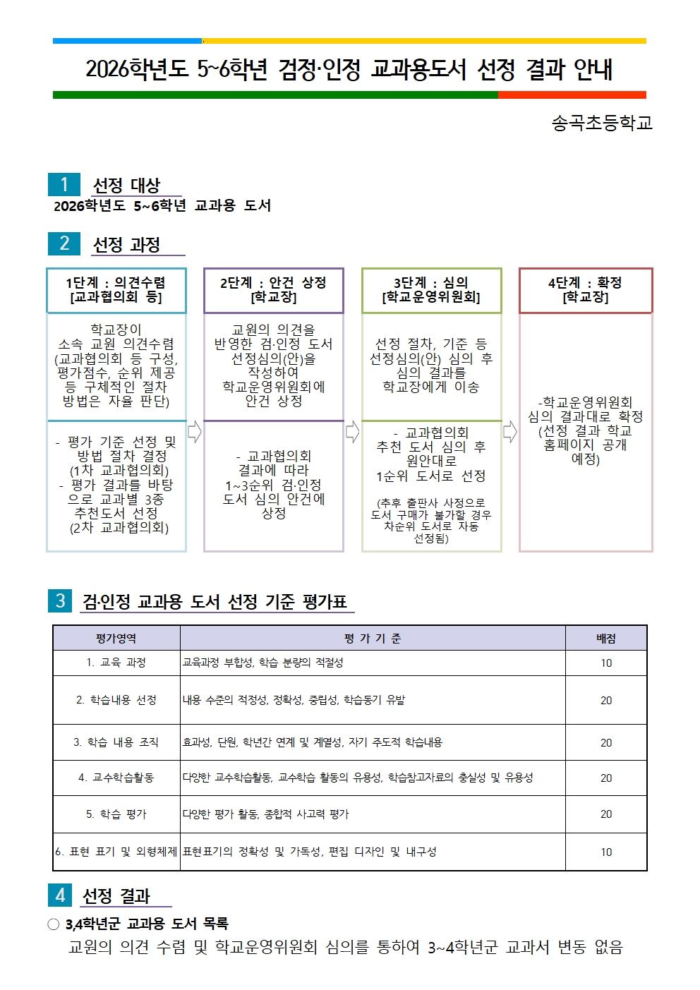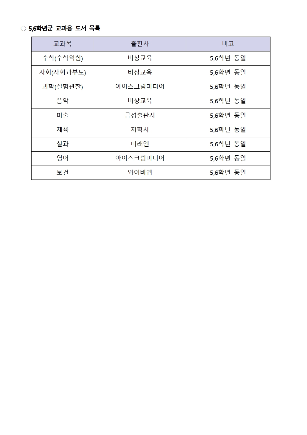2026학년도 5,6학년 검인정 교과서 선정 결과입니다.