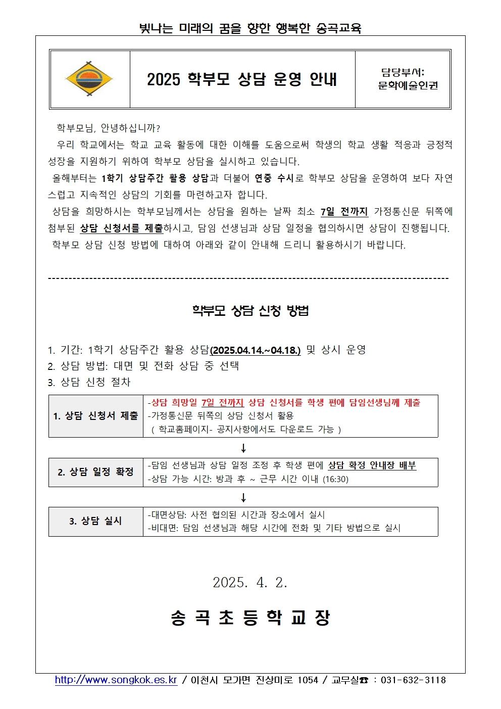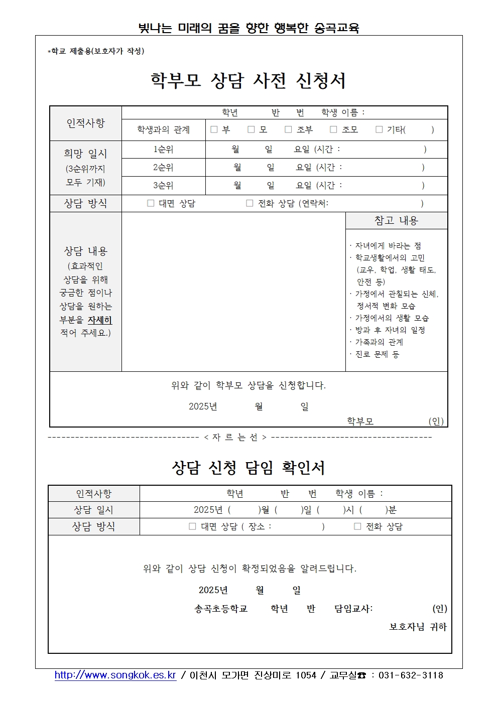 2025 학부모 상담 운영 안내 가정통신문.hwp